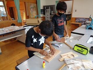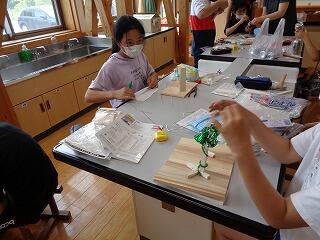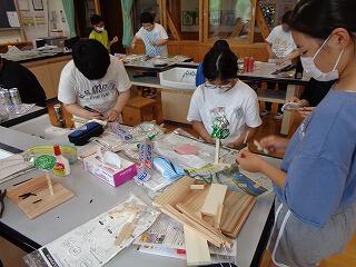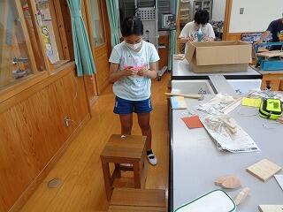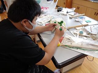 3年生の図工です。いろいろなアイディアを駆使して楽しい乗り物を作っています。