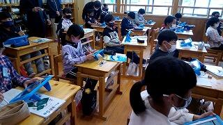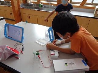 4年生は理科でプログラミングアプリを使って、人が通ると電球がついたり、プロペラが回る仕組みを作りました。日々どんどんみんなの技術は進歩していきます。