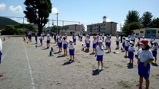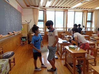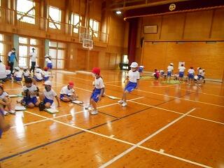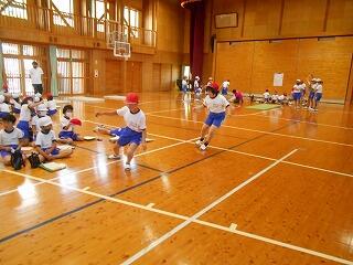 今日はあいにくの雨でしたので、1年生は室内でDVD視聴、2年生は体育館利用になりました。