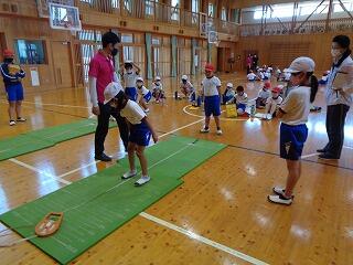 去年同様 ボールを譲ってあげたり、利き手でない手でボールを投げたりと思いやりのある行動が見られます。