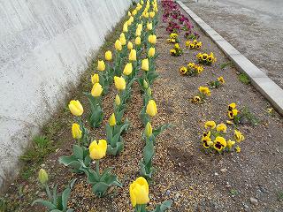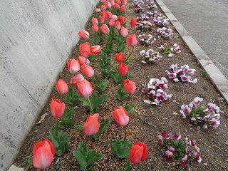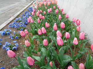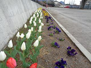チューリップがにぎやかに咲いています。明日から令和2年度になります。始業式になったらぜひこの花壇を見て、豊かな気持ちになってください。