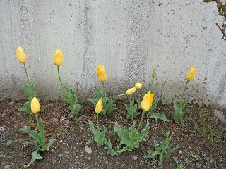 チューリップが咲き誇りそうです。明日の登校日にはみんなを迎えています。1年生のチューリップもとっても元気です。