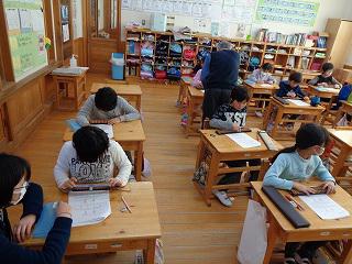 漢字の広場という単元です。地図を見ながら文章を作り目的地までを作文にします。同じ所に行くのに、みんな違う表現を使っていました。漢字を交えたいろいろな表現を学びました。