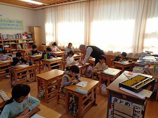 3年生の算数で珠算の学習があります。塩澤珠算学校の先生を講師にお招きしてそろばんの使い方を学びました。初めての子もいますので、丁寧に教えてくださいました。そろばんをはじく音が心地よく聞こえていました。
