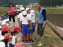 ご厚意に応えるべく、児童はおぼつかない足元ながら、一生懸命に稲を植えていきました。児童たちは、「楽しかったです。」と満足そうでした。かけがえのない体験をありがとうございました。秋の収穫も待ち遠しいです。