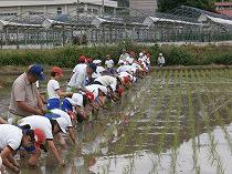 地元の指導者の方や地域の老人会の方のご協力のもと,5・6年生は田植えを行いました。