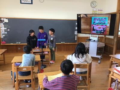 1年生国語の授業「くじらぐも」の発表練習のようすです。