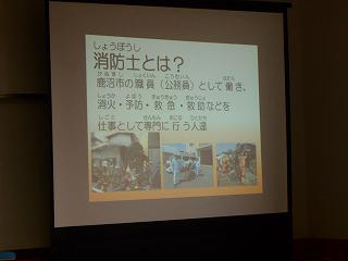 4年生の社会科では鹿沼市消防団第11分団の皆様、鹿沼市消防本部地域消防課の方に来ていただき有意義な学習をすることができました。消防団、消防士の働きや実際の土砂災害、昨年の台風時の粟野地区の浸水状況を地図上で見せていただくなど講師の皆様には大変お世話になりました。