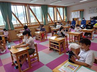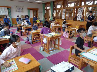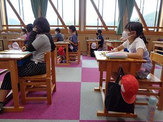 読み聞かせボランティアの皆様にはいつも大変お世話になっております。今回は1・2年生一緒の読み聞かせですので、夢階段の窓を開け、いつものスポットクーラーを活用して実施しました。大変好評でした。