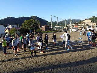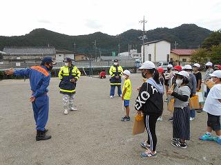 通学班会議では歩行、横断の仕方、あいさつについて確認しました。大きな声であいさつができる班に最後に実際にあいさつをしてもらいました。
