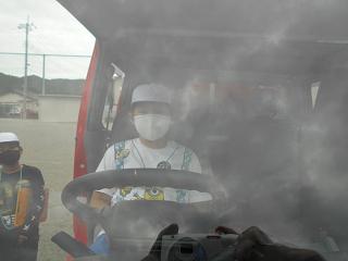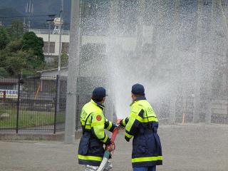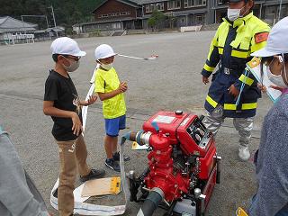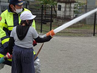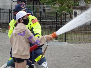 後半は消防車の働きを詳しく教えていただきながら、体験をさせていただきました。