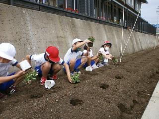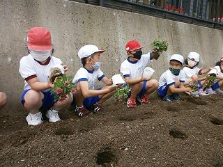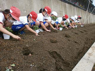 気温が高い日が続きましたので、バケツ苗がどんどん芽を出しています。5年生も興味深く観察していました。