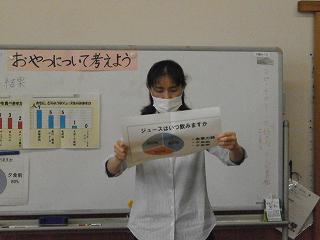 「正しいおやつのとりかた」について共同調理場の松島先生からご指導いただきました。