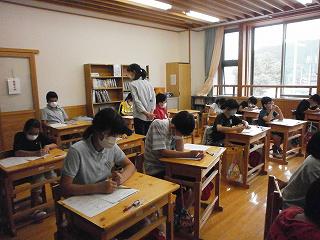 5年生がドリル学習に無心に取り組んでいます。鉛筆を走らせる音しか聞こえませんでした。