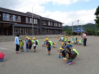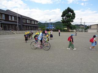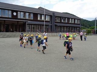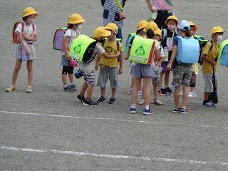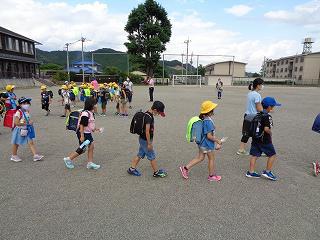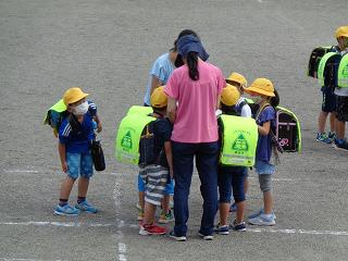月曜日は1~3年生の下校です。暑さのためマスク着用が不快のとき、マスクははずし黙って登下校するようにしています。
