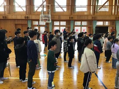 つつじっ子タイムに全校児童で卒業式の別れの言葉の練習をしました。
