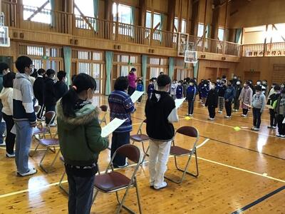 つつじっ子タイムに体育館で卒業式の練習をしました。