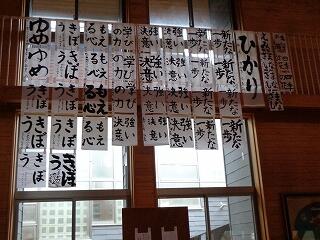 みんなが書いた書道です。こうして掲示しますと迫力がありますね。