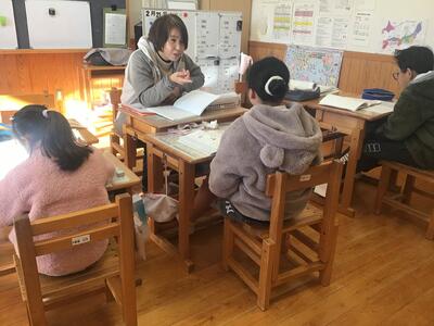 学年によって、教科書の図を見て自分でお話しを作ったり、詩を考えたり、漢字の学習をしたりしていました。
