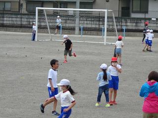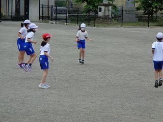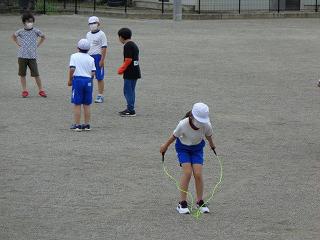 4年生 広がって縄跳びをしています。