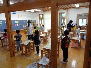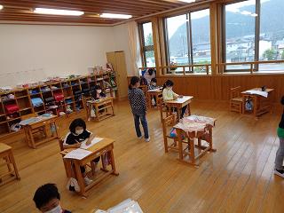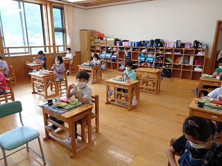 4年生は食事場所を2カ所にしています。
