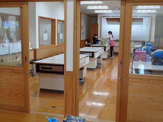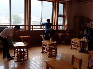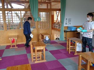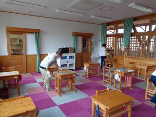子どもたちが下校後すぐ職員が分担して消毒作業に入ります。