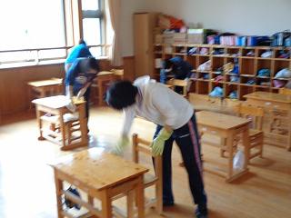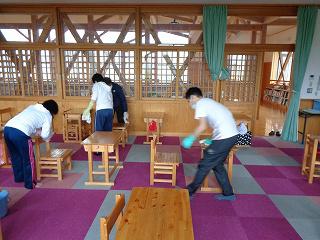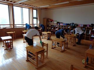 放課後の消毒作業