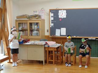 分担に分かれて音読発表会を行いました。それぞれの子が考えた動作を交えながら音読を進めていました。みている態度も立派です。2年生らしい様子を随所に感じました。