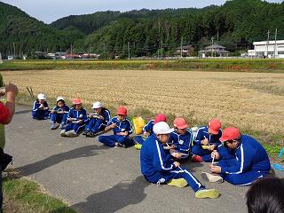 秋晴れの中、田んぼの先生杢子さんの御指導の下、稲刈りを実施することができました。稲刈り前にお赤飯をいただき、活力源にさせていただきました。本能にお世話になりました。