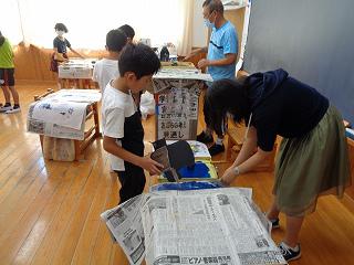 書かれた文章を基に絵がどの位置にくるのか、相談しながら置いていきます。役割を決めて協力して絵の位置を決めていきます。