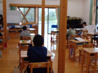気温が低くなってきましたが、みんな元気いっぱい登校してきます。身の回りの整頓、連絡帳を書いています。
