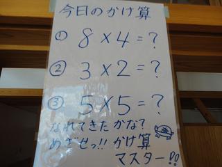 教室の入り口には「今日のかけ算」。九九を唱えてから入室です。