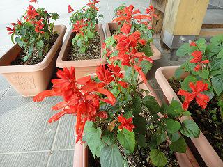 休み中軒下に移動し、咲き終わった花を摘み世話を続けたところサルビアがまた花をつけました。うれしかったです。学校教育と共通性があり、勉強になりました。