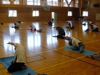 その後の実習では、「ヨガ体験~心身共にリラックス~」をテーマに、体育館で1時間たっぷり活動しました。講師の先生をお招きし、ゆったりと体をほぐしたり伸ばしたりして、暑い中でしたが、心身共にリラックスできたようです。