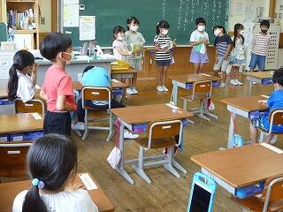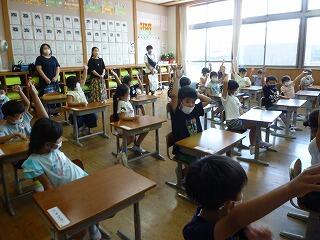 2学期に入って、クラスごとに身体計測をしています。昨日が1,2年生、今日が3,4年生、明日が5,6年生です。身長と体重を測定し、「1学期より身長が伸びたー!」と喜ぶ声が聞こえてきました。1学期と比べて3,4cmも伸びた児童もいるようです。成長著しい時期です。バランスの良い食事、適度な運動の大切さを改めて感じます。