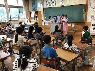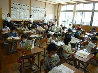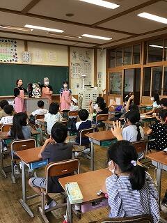 今日は、1年生の教室で読み聞かせをしてくださいました。1年生の子どもたちは、興味津々!食い入るようにして紙芝居を見て、じっくりとお話を聴いていました。