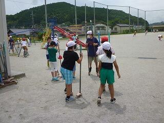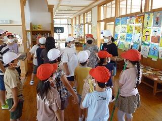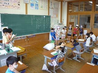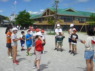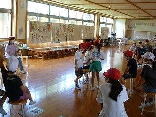 今日は、全校生が縦割り班になって共遊をして楽しみました。熱中症予防のため、すべての班が屋内での遊びに変更となりましたが、事前に6年生が遊びを考えてくれていたので、スムーズにスタートできました。