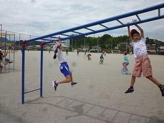 好天に恵まれ、業間と昼休みは外で元気に遊ぶ子供たちが伸び伸びして見えました。遊具を使ったり、友達同士で鬼ごっこをしたりして、仲良く楽しく遊ぶ姿に、こちらまで元気をもらいました。