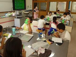 各教室をまわると、集中して授業に取り組む様子が見られます。教師の質問に積極的に挙手し発表したり、ペアやグループになって話し合いをしたり、友達の発表をしっかり聴いたり、カスタネットでリズムうちをしたり、真剣に縫物をしたりなど、「できた!分かった!」の声があちらことらで響いていました。