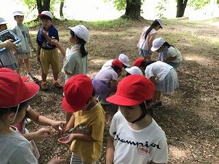 2組は、外に出て夢中になって虫を探し、写真におさめていました。さっそく写真に撮ると「どこにいるか分かりますか?」と質問してくる子供たち。生き生きとした姿が見られました。