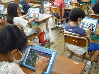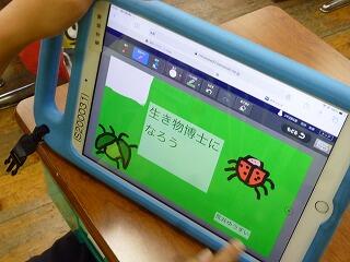 1年2組では、タブレットを使いオクリンクの操作をしているところでした。先生の話をよく聞きながら操作していましたが、手慣れた様子でスムーズに作業が進められていました。