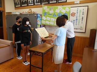 博貫クラブの皆様が、夏休みの作品をまとめてくださいました。児童の夏休みの努力の結晶であるたくさんの作品を、出品表に記名したりまとめて梱包したりしてくださいました。博貫クラブの皆様からは、「子供たちの豊かな感性が表れた作品を見ながら作業ができて楽しい。」と言っていただきました。大変助かりました。感謝申し上げます。