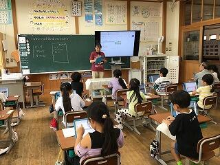 9月5日(木)、各教室をまわると、半数近いクラスでタブレットを活用していました。顕微鏡で見えるものをタブレットで撮影してさらに拡大したり、毛筆の手本の表示として活用したり、調べ学習やデータの共有に活用したり、子どもたちは、自分たちで工夫しながら、様々な場面でタブレットを活用していました。