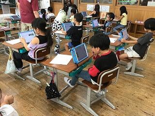 9月10日(火)、1年生の教室では、タブレットを使って学習をしていました。漢字練習をする子、計算に取り組む子など、自分で課題を選んで取り組んでいました。自分に合った学習を自分のペースで進められるのもタブレットの良さです。みんな頑張っていました。