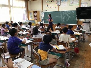 9月9日(月)、4年生の教室では、外国語活動の授業をしていました。発音の練習をしたり、0から60までの数字の発音の仕方を学んだりしていました。ALTの発音をまねて復唱する児童の発音は、とても上手でした。