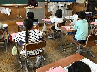 めあてを考えて丁寧にプリントに書いたり、先生の話にしっかりと耳を傾けたり、学習に集中して取り組んだり、暑さにも負けず頑張っている様子が見られました。