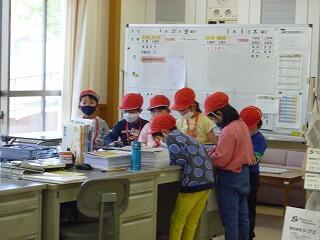 2年生が1年生を案内し、職員室や校長室、保健室や各特別教室をグループごとに探検しました。各部屋にはキーワードが隠されていて、それを探しながら進めました。どの班もすべての部屋を探検して戻ってきました。
