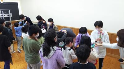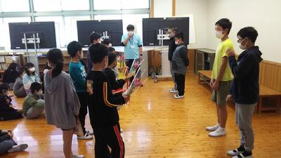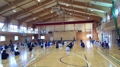 縦割り班ごとに校庭や体育館に集合し、準備体操をしてからスタートしました。6年生を中心に、上級生が下級生の面倒をみながら活動しました。