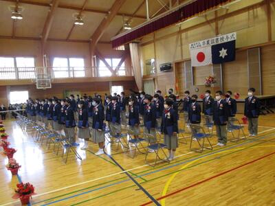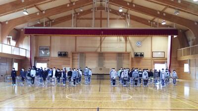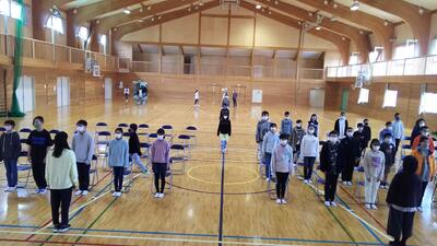 今日は、1・2年生と6年生で、開会式の練習を行いました。