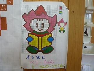 今月は校内読書月間として、図書委員会が中心となって読書を勧める活動をしてきました。最終週となり、図書委員会から「みんなでべりーちゃんを完成させましょう。」というアナウンスが入りました。本を1冊読むとベリーちゃんの大きなポスターにカードが張られます。全校生でカードを貼って、千冊を目指しています。随分カードが貼られてきましたが…。完成するのか楽しみです。